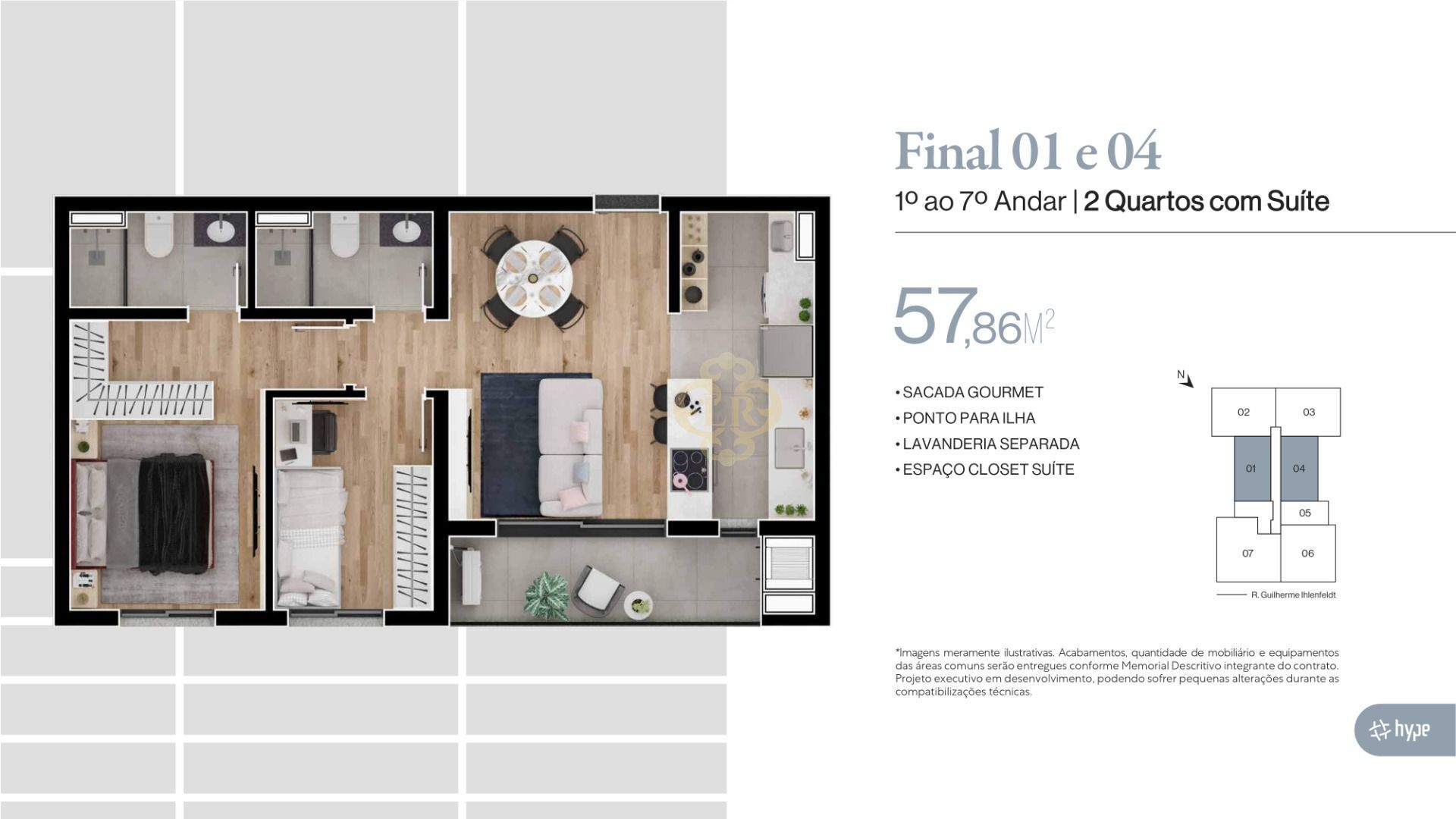 A unidade conta com uma área ampla de 57,86m², dividida de forma estratégica para uma melhor mobilidade e conforto em cada ambiente, o apartamento conta com 2 quartos sendo 1 suíte,1 banheiro social, uma sala de dois ambientes, sendo sala de estar e sala de jantar, com uma cozinha ampla separada para uma melhor locomoção, e um espaço de lazer ou pode ser usado como lavanderia.