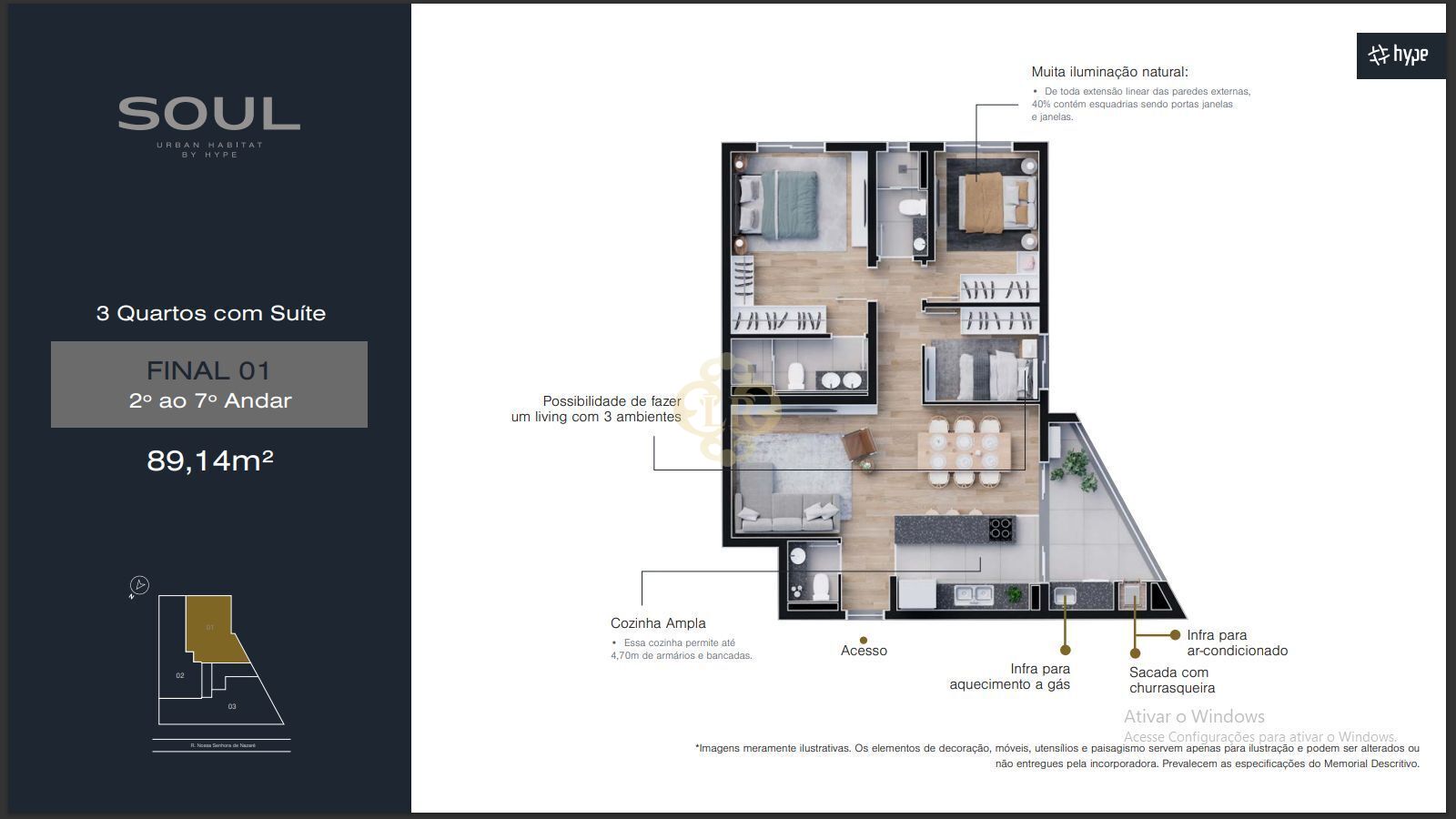 Esta luxuosa unidade conta com um espaço amplo de 89,14m², divididos estrategicamente em 3 dormitórios sendo 1 suíte, 1 banheiro social e 1 lavabo, uma sala ampla de dois ambientes sendo sala de estar e sala de jantar, uma ampla área para cozinha uma área de serviço com um espaço ideal.