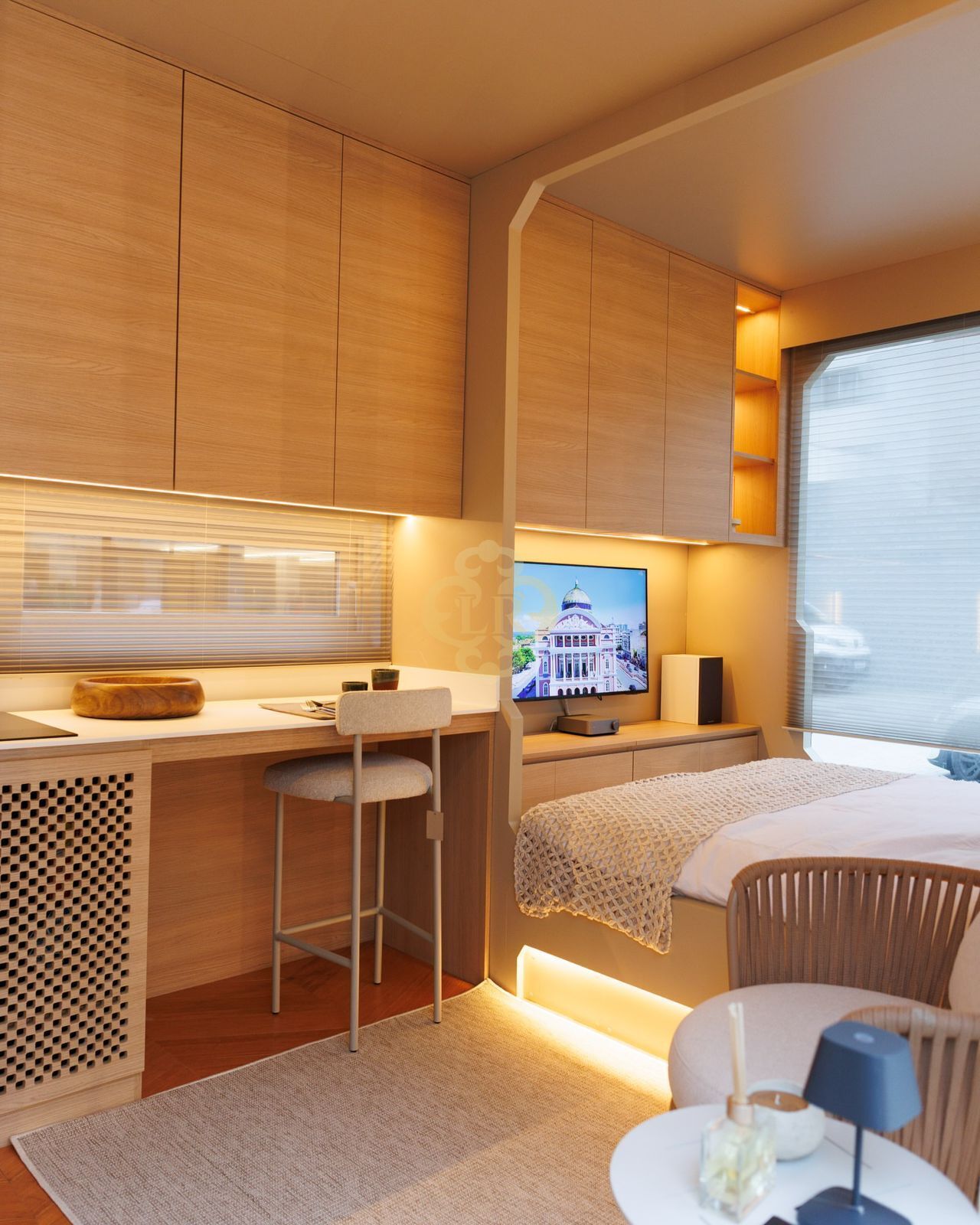 • Móveis embutidos na mesma cor e acabamento das paredes