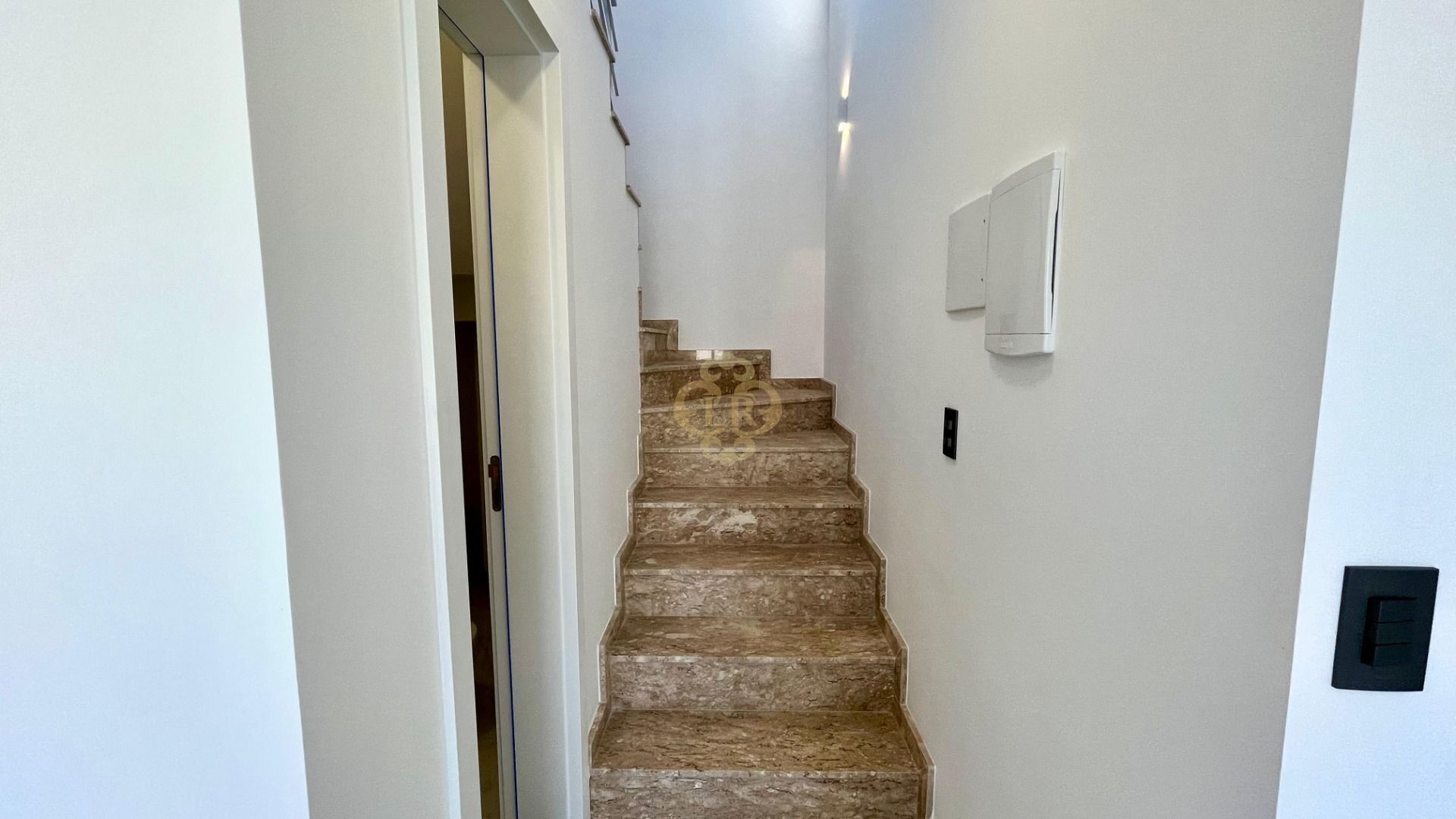- Escada em mármore travertino, um detalhe de luxo e elegância.